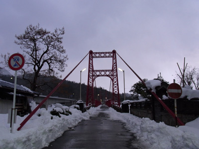 つり橋を見つけたけど、湯冷めしそうになるのと途中で雪がすごくなって渡りきりは断念;;