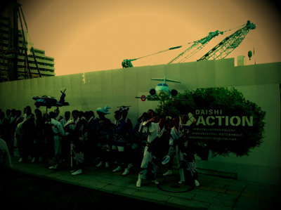 交通止めになる直前は、バスの中から待機している踊り子さんがたくさん見えました。