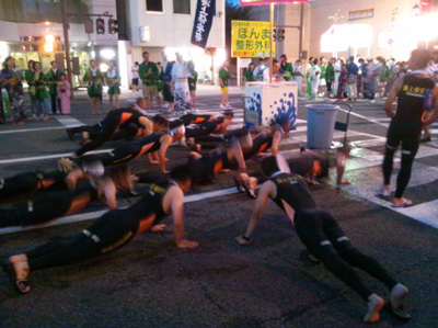 こんな風に商品のPRする企業があったり纏に広告を載せたり、冠婚葬祭企業は花嫁さん花婿さんのコスプレしたりと、踊り以外の見所があったりします。