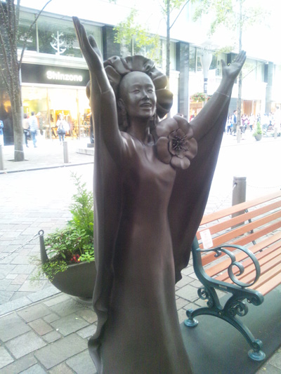 あちこちに緑化とベンチが設置されてて、何故か有名人の像がそばにあるのに気がついたのは、帰りの新幹線の時間が近づいてきてから。