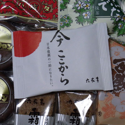 六花亭は北海道のポピュラーなお菓子屋さんだから、社長さんが常駐してる北海道本社が手配したと思われますが、でもこの日の丸がデザインされた「今ここから」お菓子が気になってホームページ見たけど載ってないの… 。