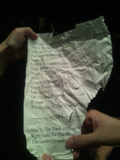 まん前の最前列の人が手にしたセットリストは隣の人と取り合いになっちゃってこんなだよ;;