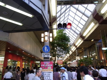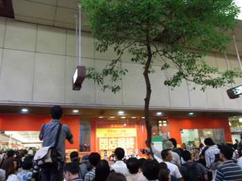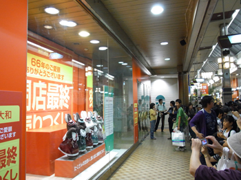 今は上の看板も外れてシャッターも閉まったままですが、6月25日閉店当日のセレモニーはたくさんの人で…