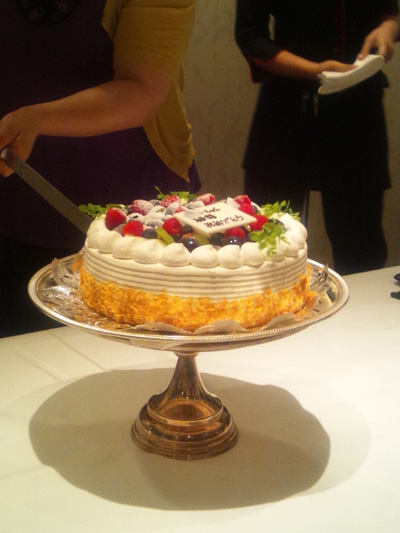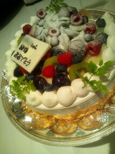 このケーキは会場で使ったレストランが入ってるホテルに娘さんが働いていらっしゃるという、これまた職場の人からの御協力。