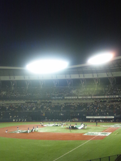 日が暮れても蒸し暑かったスタンドに冷たい風が一瞬流れて、「雨の匂いがする…」って言った瞬間、