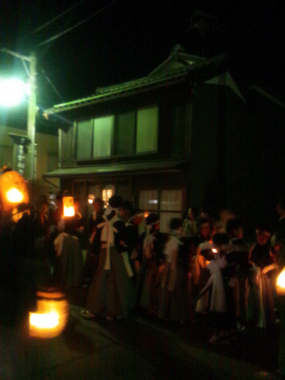 お祭のメインは、街を厄除けしながら巡回する神楽組と、その後ろから付いて回るのが…