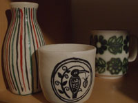 これは私の… 手前、横浜に行った時教会でバザーやってて見つけたのと、イギリスのMacclesfieldって街のアンティークショップで買ったカップ。いずれも作者不明…ですが お気に入り~